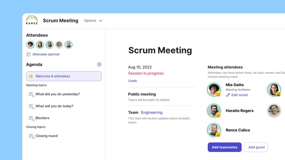 This is why it’s best to make sure your agenda covers the broad strokes. For example, take a look at the Range template for daily standups.