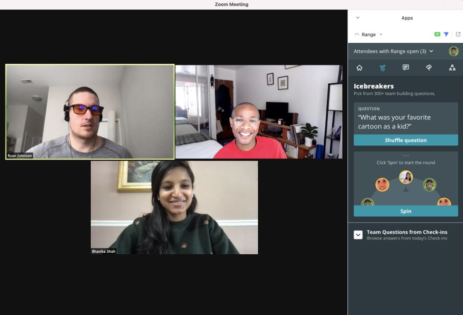 Range is the best Zoom app. Async check-ins in Range help teams share what they're working and how they're doing. With the Range Zoom app, run a combined written and video standup--collect status updates in advance and leverage your meeting time for deeper team building. With the status updates out of the way, you can get to the important stuff.