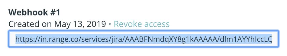 8. Switch back to the Jira tab and paste the webhook URL into the URL field. Give the webhook a name as well, like "Range Webhook".