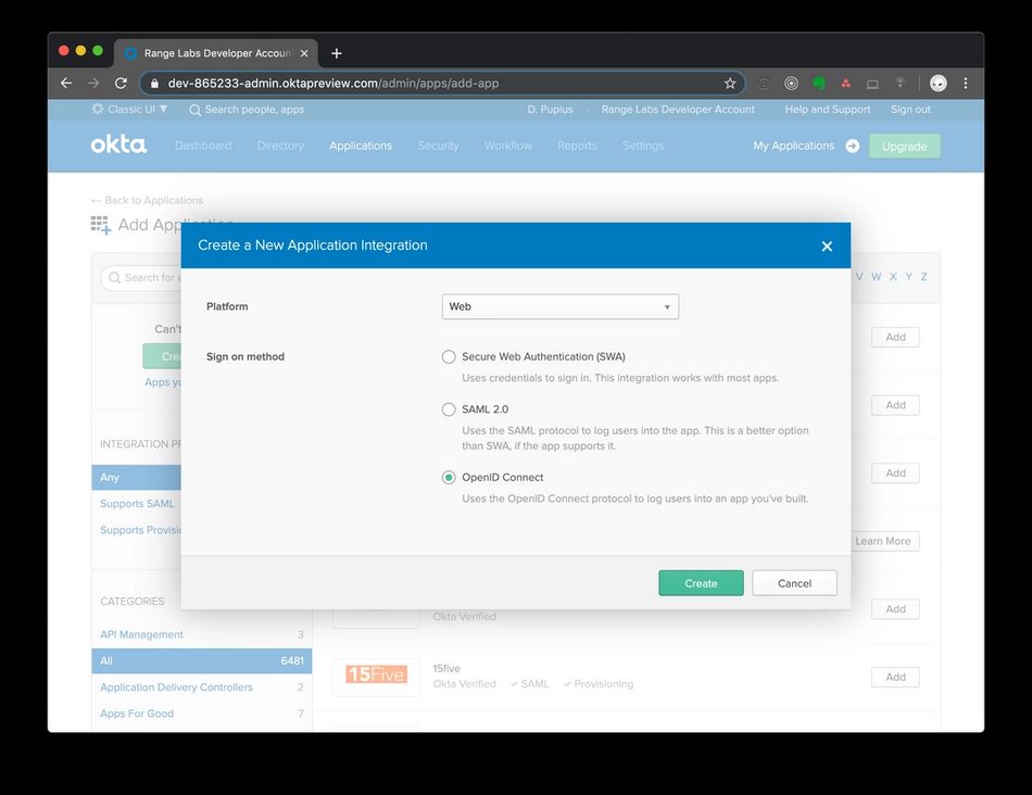 Range supports single sign on through the Open ID Connect standard. If you would like to configure Okta for your Range workspace, please follow the following steps: